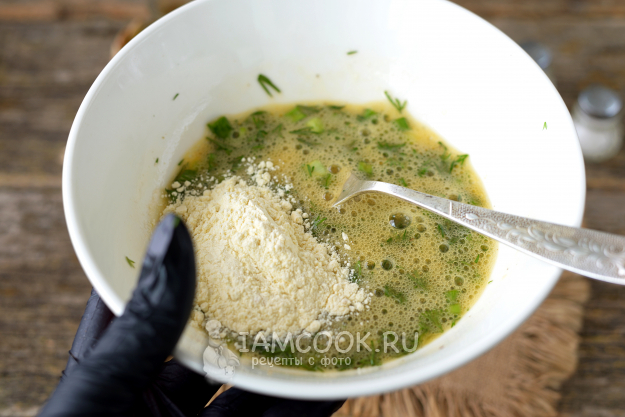 Добавьте муку. Муку можно всыпать любую - пшеничную, кукурузную, рисовую и т.д. Я использую кукурузную. Смешайте все до однородного состояния, чтобы не было комков.