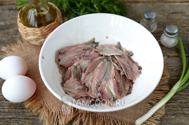 Почистите кильку от голов, внутренностей и хребта, помойте под проточной водой, откиньте на дуршлаг, дайте полностью стечь воде.