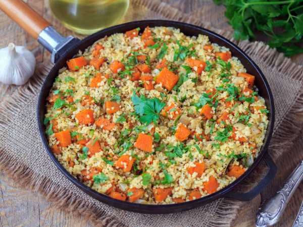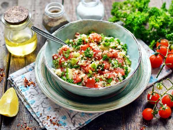 Смешайте овощи с кускусом, добавьте масло, уксус, соевый соус, соль по желанию и перец по вкусу. Хорошенько все перемешайте.