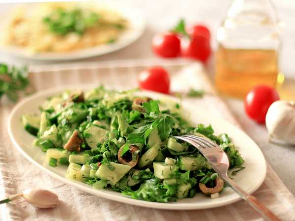 Теперь всыпьте в салат нарубленную кинзу, еще раз все перемешайте.