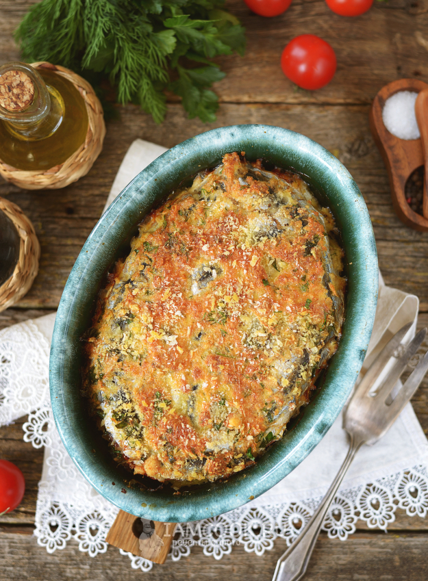 Сейчас мы будем готовить традиционный вариант итальянской запеканки Tortino di alichi con patate e pomodori. Конечно же, в оригинальном рецепте итальянцы используют свежего анчоуса, но как я уже не раз писала, что у нас эта рыбка горькая из-за большого количества в ней желчи, поэтому мы будем использовать свежую черноморскую килечку или сардельку, как говорят в Одессе.
