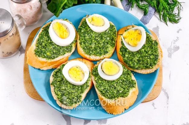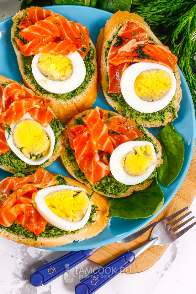 Отваренное вкрутую яйцо очистите от скорлупы, промойте в воде. Нарежьте кружочками и выложите на край каждого бутерброда.