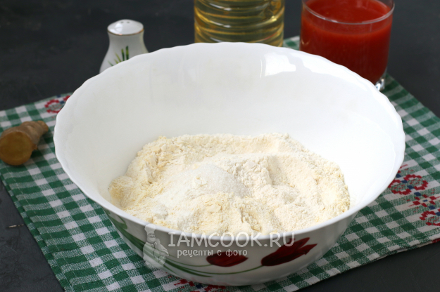 Для приготовления постного печенья на томатном соке подготовить из списка необходимые ингредиенты.