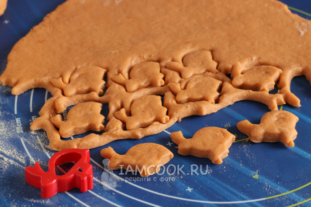 Если хотите, чтобы печенье было мягким, то раскатывайте его не тонко, около 5 мм толщиной. С помощью различных формочек вырезать из теста фигурки.