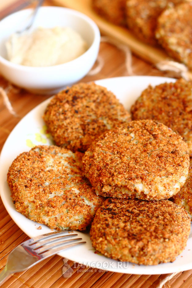 Котлеты из рисовой каши готовы. Подаём к столу в горячем или тёплом виде с любимым соусом. Можно подавать котлеты в качестве гарнира к рыбе или мясу, либо же использовать как самостоятельное блюдо и подавать со свежими овощами и зеленью.