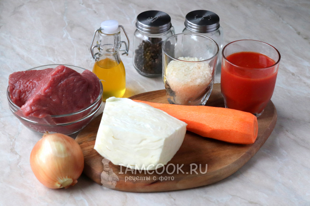 Для приготовления ленивых голубцов из говядины подготовьте продукты по списку к рецепту.