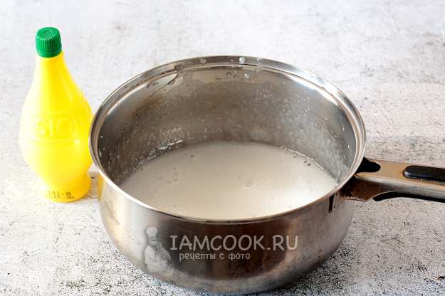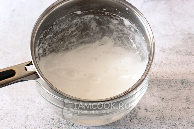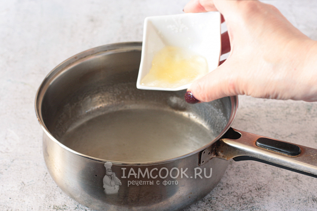 Сахарную пудру смешайте с необходимым количеством воды, хорошо размешайте и поставьте на огонь.