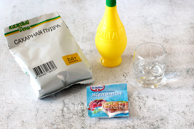 Чтобы приготовить глазурь для куличей без яиц, подготовьте необходимые ингредиенты по списку. Я готовила половинную порцию, рецепт привожу для 4 куличей.