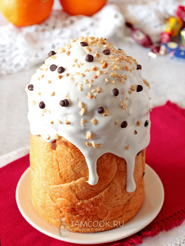 Не обязательно поливать кулич глазурью с помощью ложки, просто окуните его в глазурь верхушкой вниз.