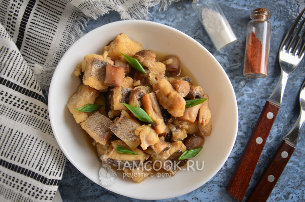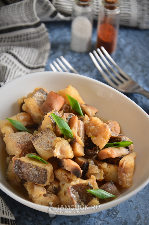 После звукового сигнала рыба с грибами полностью готова. Можно подавать ее как самостоятельное блюдо, а можно дополнить ею гарнир.