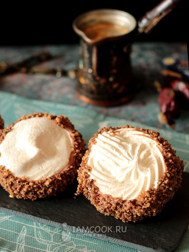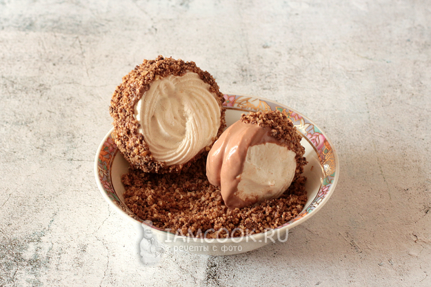 Обваляйте безе в орехово-шоколадной крошке. Пирожные «Мадам Фу-Фу» готовы.