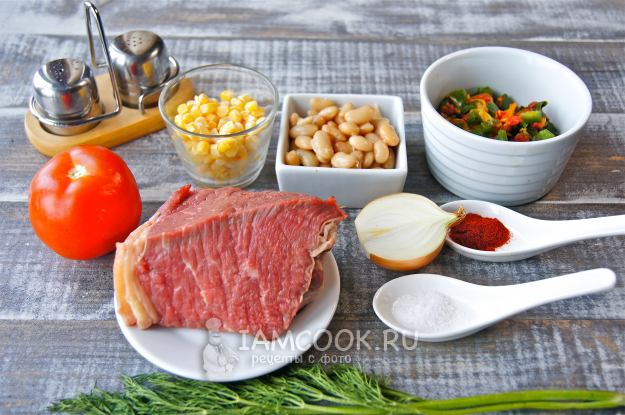 Подготовьте все необходимые продукты для приготовления говядины по-мексикански.