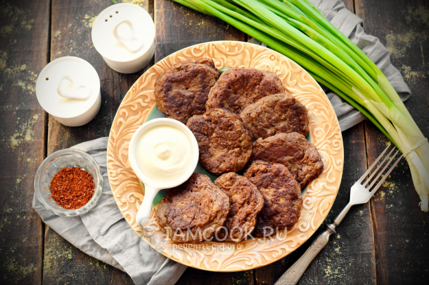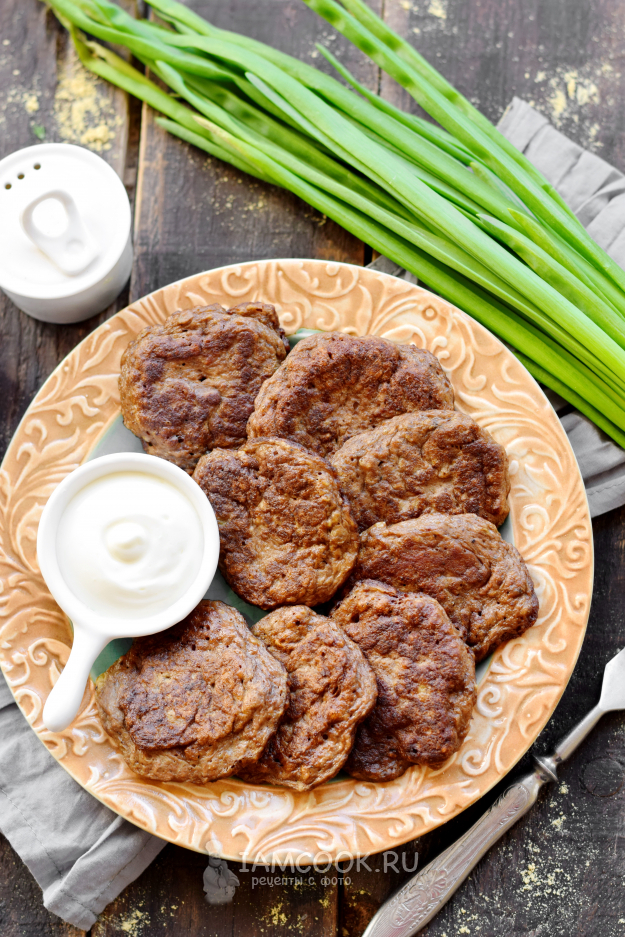Печеночные оладьи из куриной печени без яиц готовы. На стол их подавайте в тандеме со сметаной.