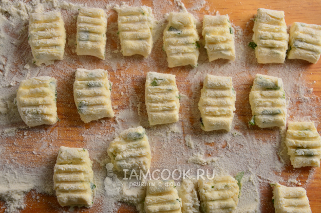 Лезвие ножа присыпьте мукой, чтобы оно не прилипало к тесту. Нарежьте жгут на кусочки шириной около 1 см.