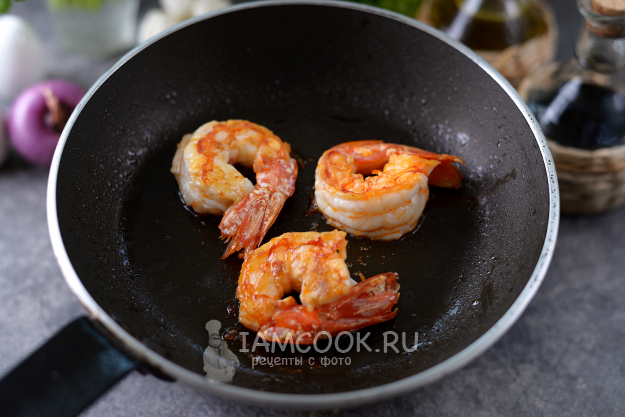 Обжарьте лангустинов с обеих сторон минуты по 2 в минимальном количестве постного масла.