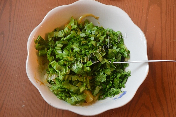 Щавель нарезать тонкими полосками, петрушку измельчить.