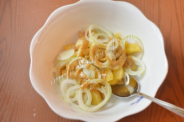 Заправить картофель с луком, отставить.