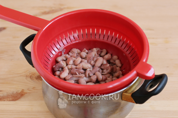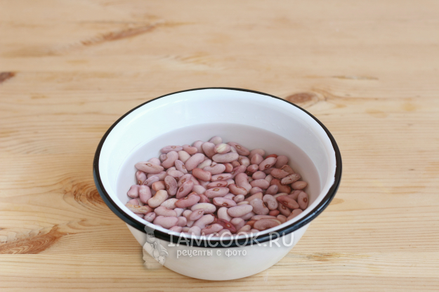 Чтобы фасоль быстрее сварилась, ее обязательно необходимо заранее замочить: лучше всего залить фасоль вечером и оставить на ночь в воде, а утром приступать к приготовлению блюда. За время замачивания фасоль хорошо разбухнет.