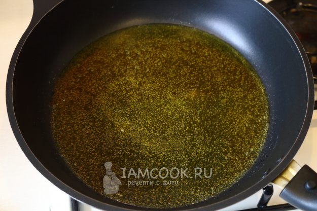 Сковороду разогреваем вместе с топлёным сливочным маслом до его закипания.