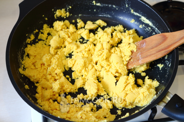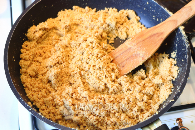 Получится достаточно сухая масса, которая при надавливании лопаткой слипается и становится однородной.