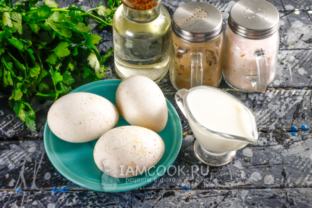 Подготовьте необходимые ингредиенты для омлета из утиных яиц и начнем кулинарить!