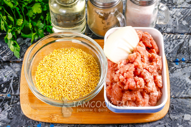 Подготовьте необходимые ингредиенты для пшенной каши с фаршем и начнем кулинарить!