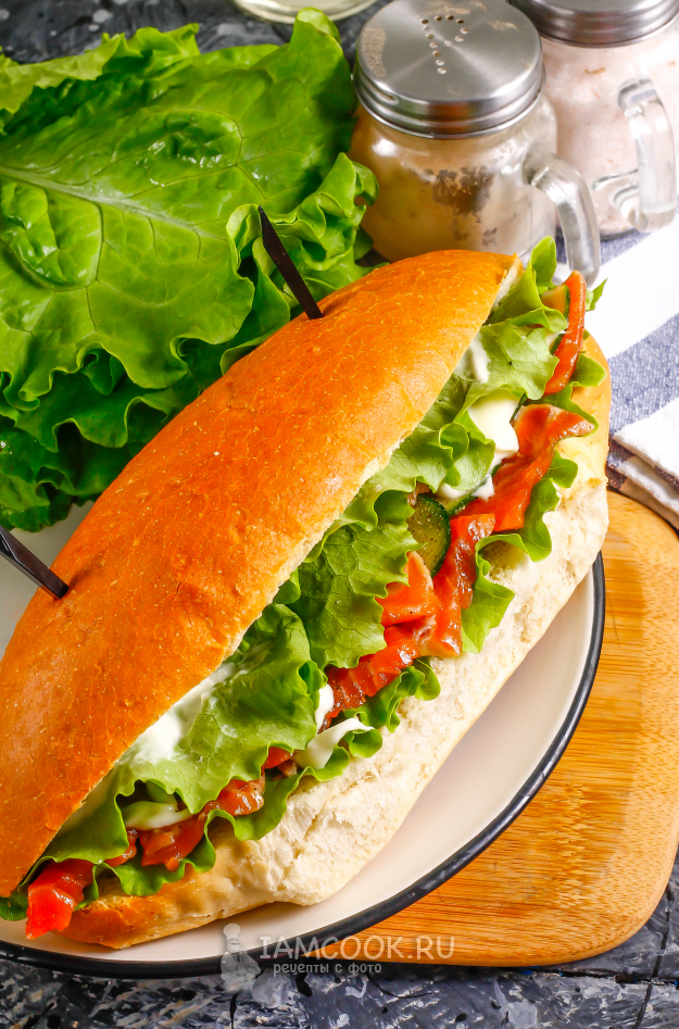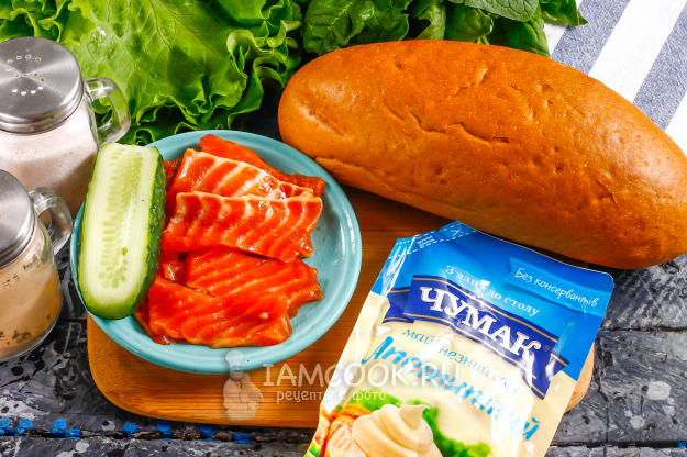Подготовьте необходимые ингредиенты для бутерброда из сайки с красной рыбой и начнем кулинарить!