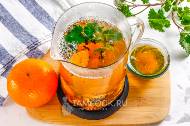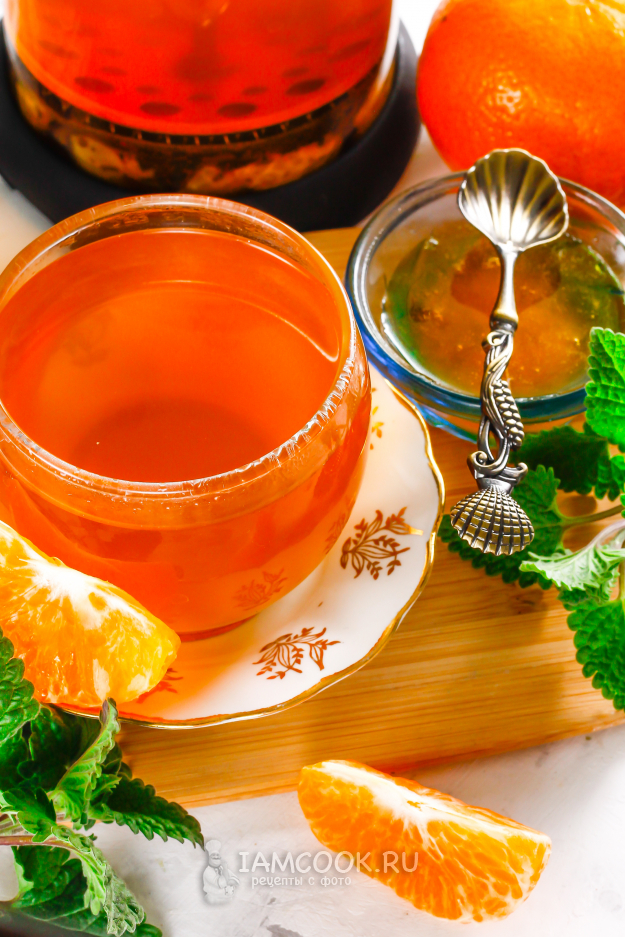 Разлейте горячий мандариновый чай в чашки, стаканы и подайте к столу горячим.
