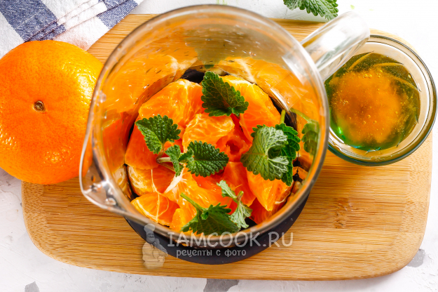 Оставьте для пропаривания на 10 минут, затем прессом слегка подавите все ингредиенты, чтобы мандариновая нарезка выпустила сок.
