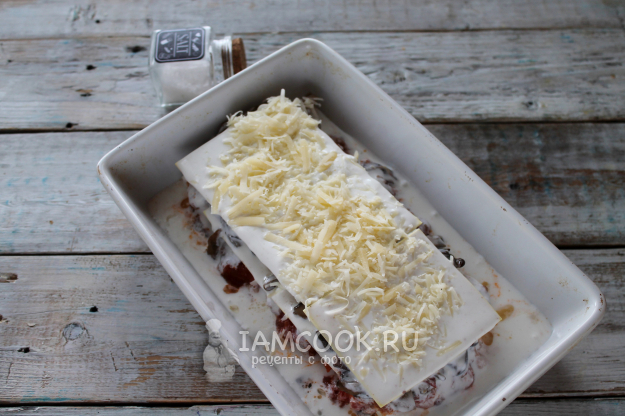 Покройте поверхность лазаньи сыром.