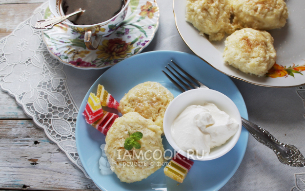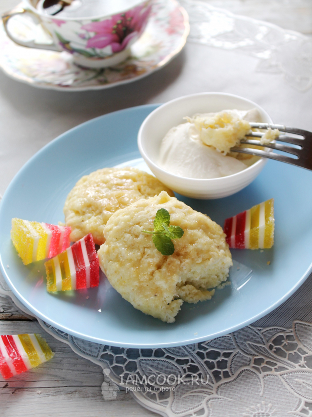 Подавайте сырники с бананом со сметаной и любыми сладкими добавками.