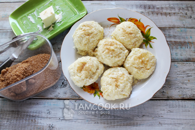 Готовые сырники выложите на блюдо, смажьте сливочным маслом и присыпьте по желанию коричневым сахаром.