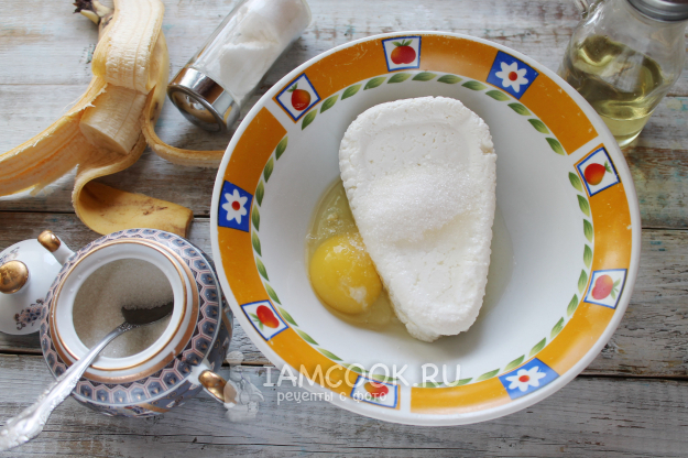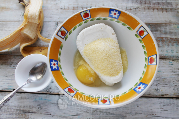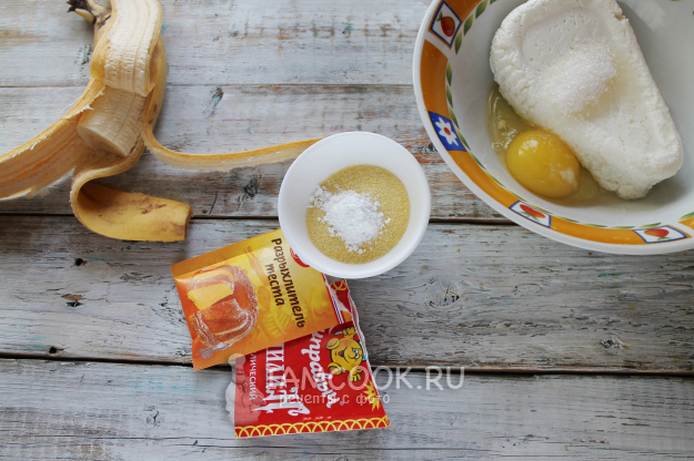 Возьмите необходимые продукты для приготовления сырников с бананом в пароварке.