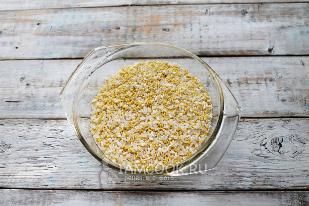 Крупы хорошо промойте, меняя воду несколько раз, пока вода не станет прозрачной. Дайте крупе немного постоять в воде - это сэкономит время варки каши.
