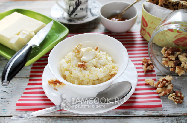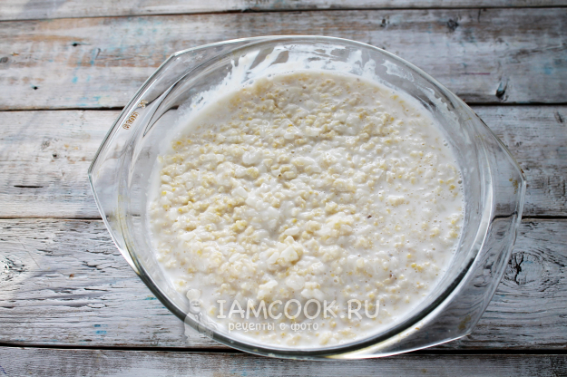 Посолите по вкусу. Если любите сладкие каши, то добавьте по вкусу сахар. Учтите, что когда каша постоит, она еще впитает молоко, поэтому оно должно быть свободным, как на фото ниже.