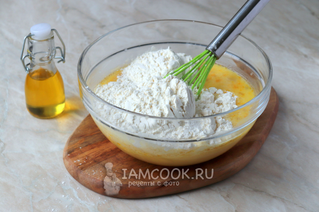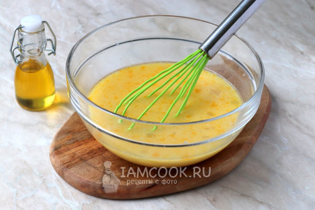 После этого добавьте в опару куриное яйцо, соль и растительное масло. Тщательно перемешайте до однородного состояния.