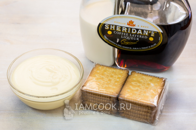 Печенье полейте ликером. Количество ликера - на ваш вкус. У меня уходило на слой в среднем 1,5 чайные ложки.