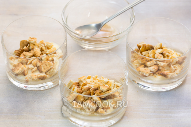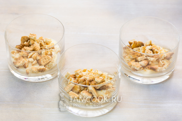 Затем на печенье - опять слой крема, затем - печенье, затем - ликер. Заполните стаканы до желаемого уровня.
