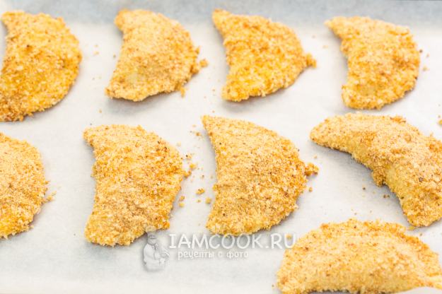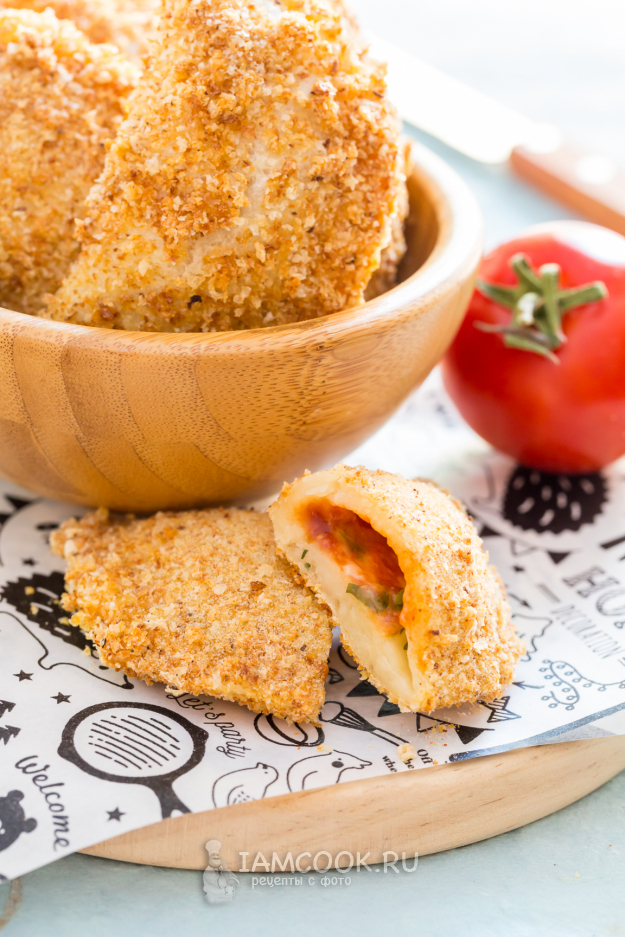 Каждую заготовку соффичини обмакивайте в разболтанные вилкой яйца, затем со всех сторон - в сухари.