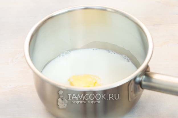 Поставьте ковш на плиту и доведите смесь до горячего состояния, масло должно растаять полностью.