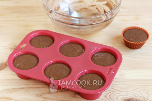 Готовое тесто распределим по формочкам для кексов.