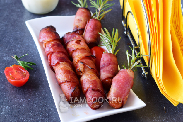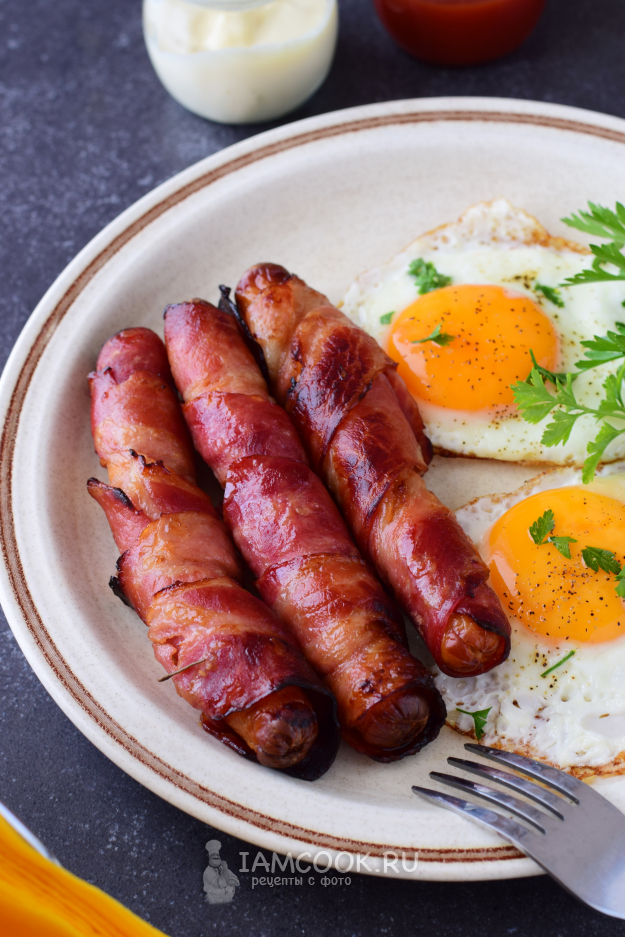 Сосиски в беконе в духовке - отличное блюдо для завтрака, стоит лишь добавить к ним яичницу!