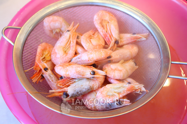 Креветок остужаем и используем по назначению. А кастрюлю с чистым бульончиком возвращаем на огонь.