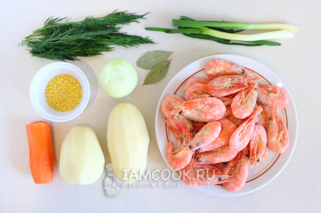 Для приготовления супа на креветочном бульоне нам потребуются следующие компоненты.