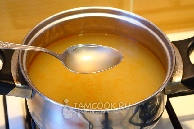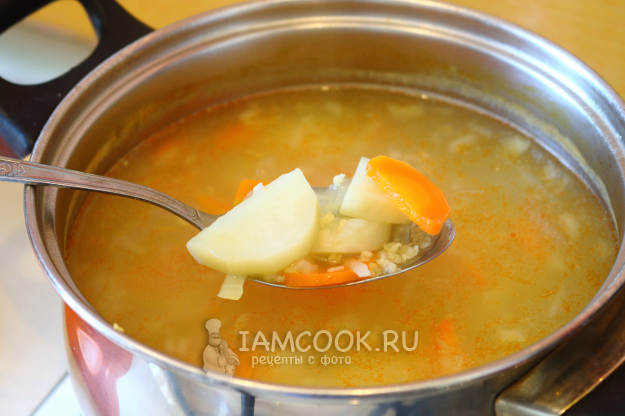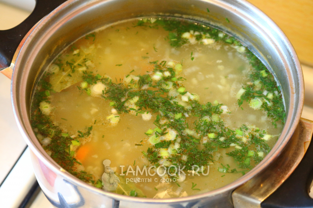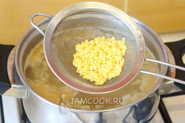 Тем временем промываю пшено и тоже отправляю его в суп.