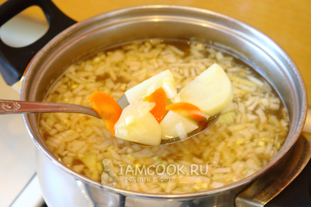 Отправляю овощи в снова закипевший бульон и варю 5-7 минут.