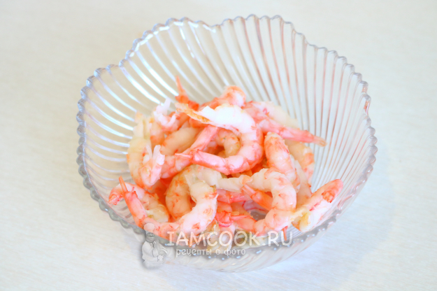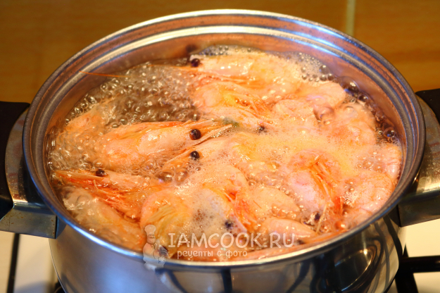 Креветок отвариваем 3 минуты в кипящей подсоленной воде.