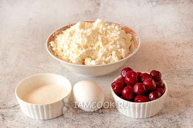 Подготовьте все необходимое для начинки. Вишню можно брать замороженную без косточек.