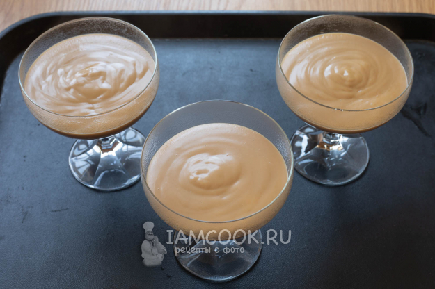 Кофейный пудинг готов к употреблению сразу после того, как он остынет. Сервировать его можно с кофейными зёрнами (или их имитацией из шоколада).