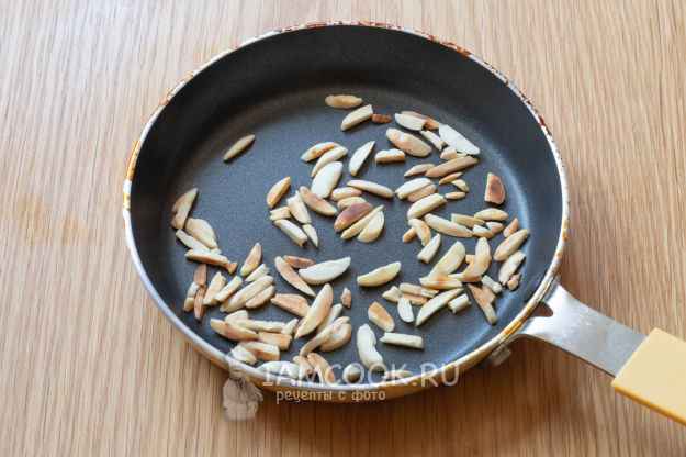 Орехи поджарить на сковороде без масла до коричневатости (2-3 минуты).
